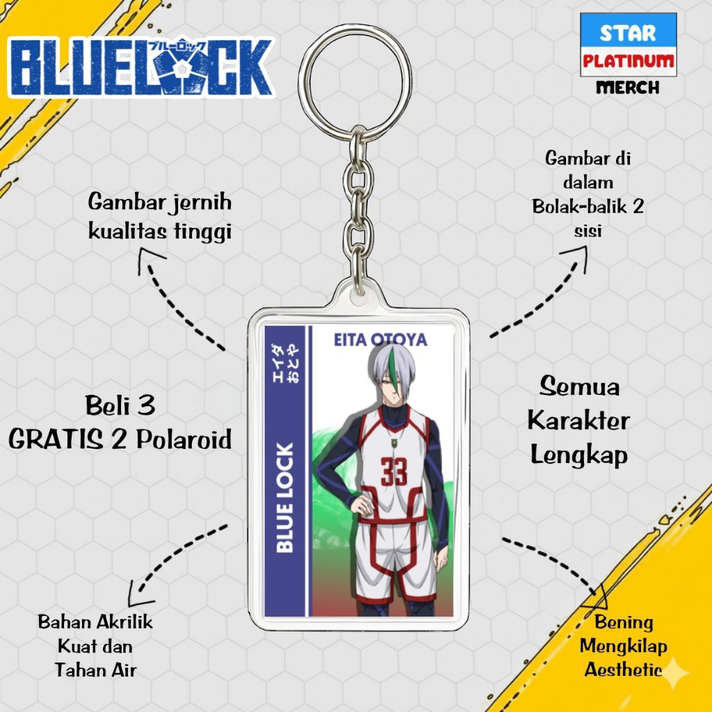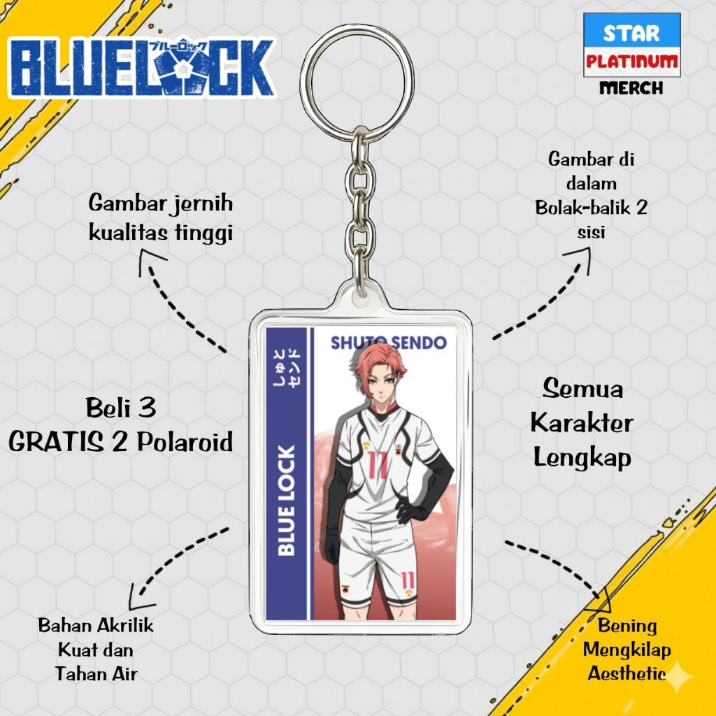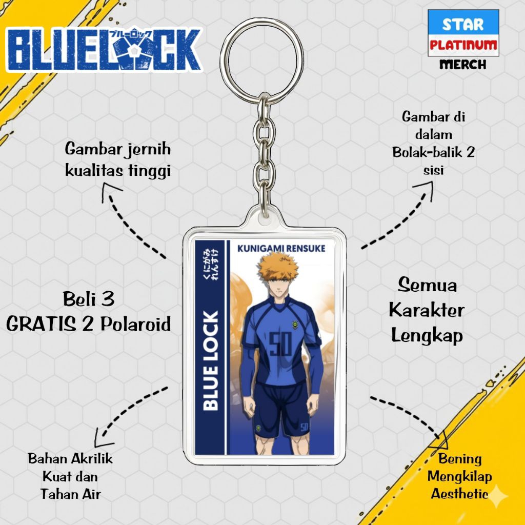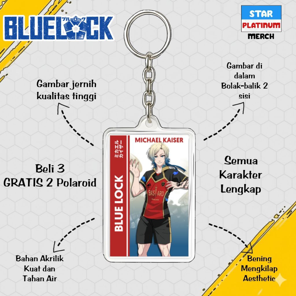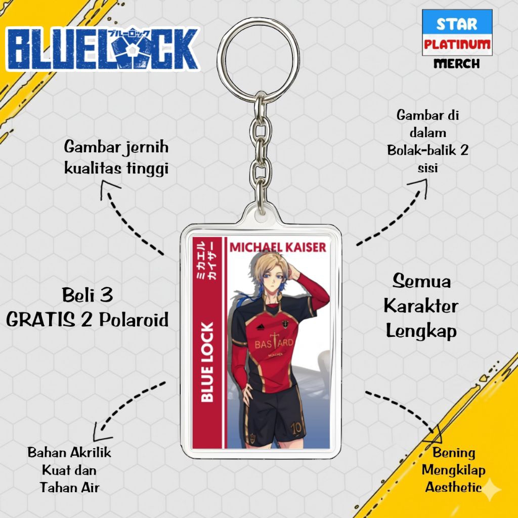 GANTUNGAN Blue Lock Keychain - Blue Lock Keychain - Anime Keychain - Nagi Keychain - Kaiser - Isagi - Rin - Shidou - Kenyu - Sae - Aiku - Barou - Bachira - Chigiri - Rei - Gagamaru - Kunigami - Raichi - Niko - Zethets