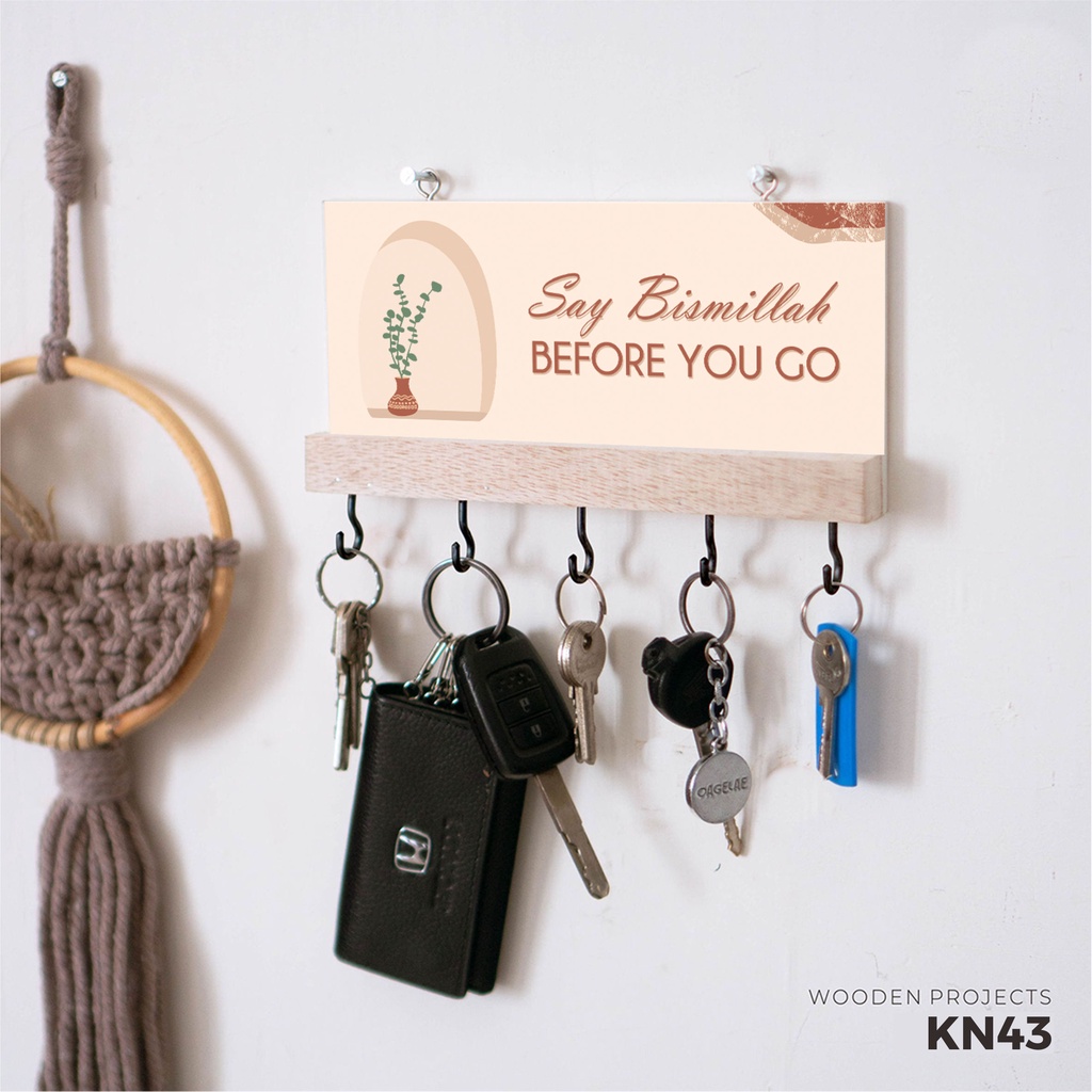 GANTUNGAN Wooden Projects Keychain Holder Home Wall Decor Organizer Supplies - KN43 B
