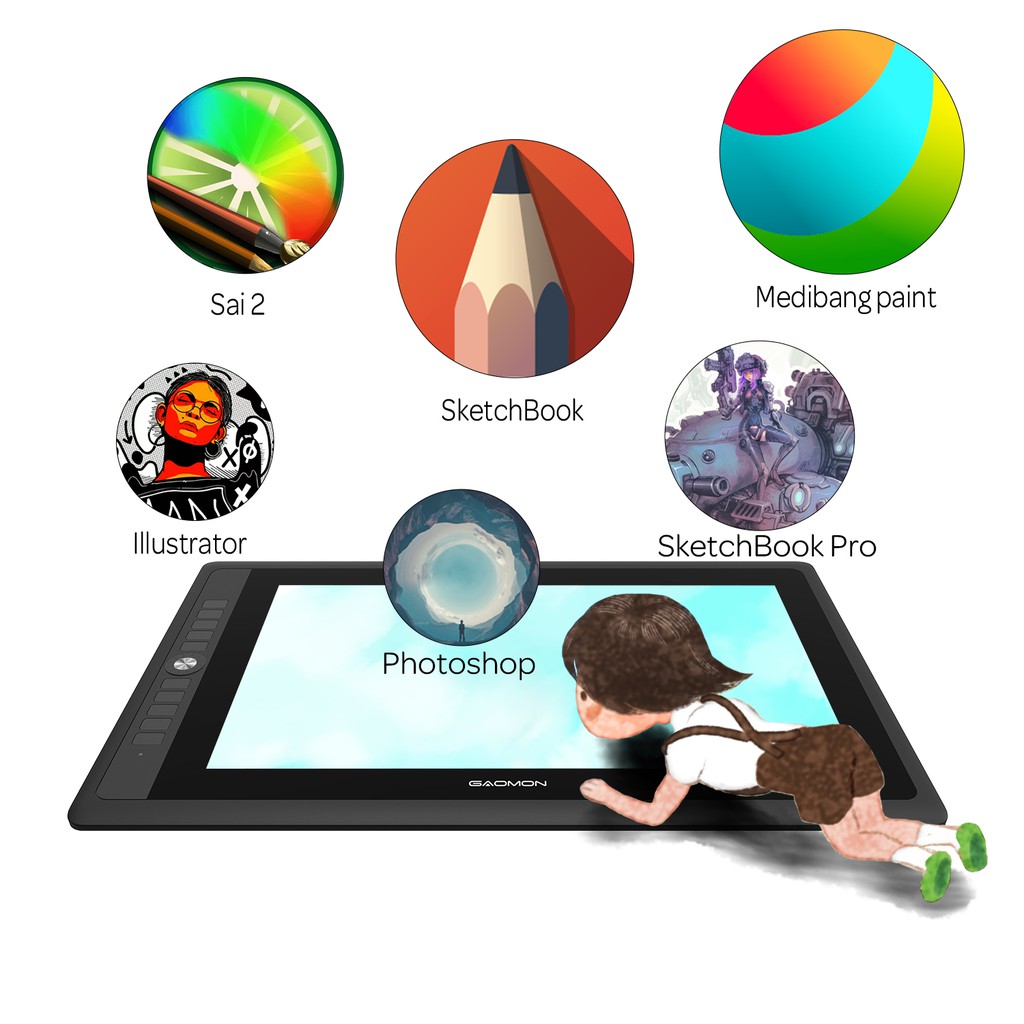 GAOMON PD156 Pro Drawing Monitor Full-Laminated 88% NTSC Pen Display 9 Express Keys 8192 Passive Tilt-Support Pen(15.6")