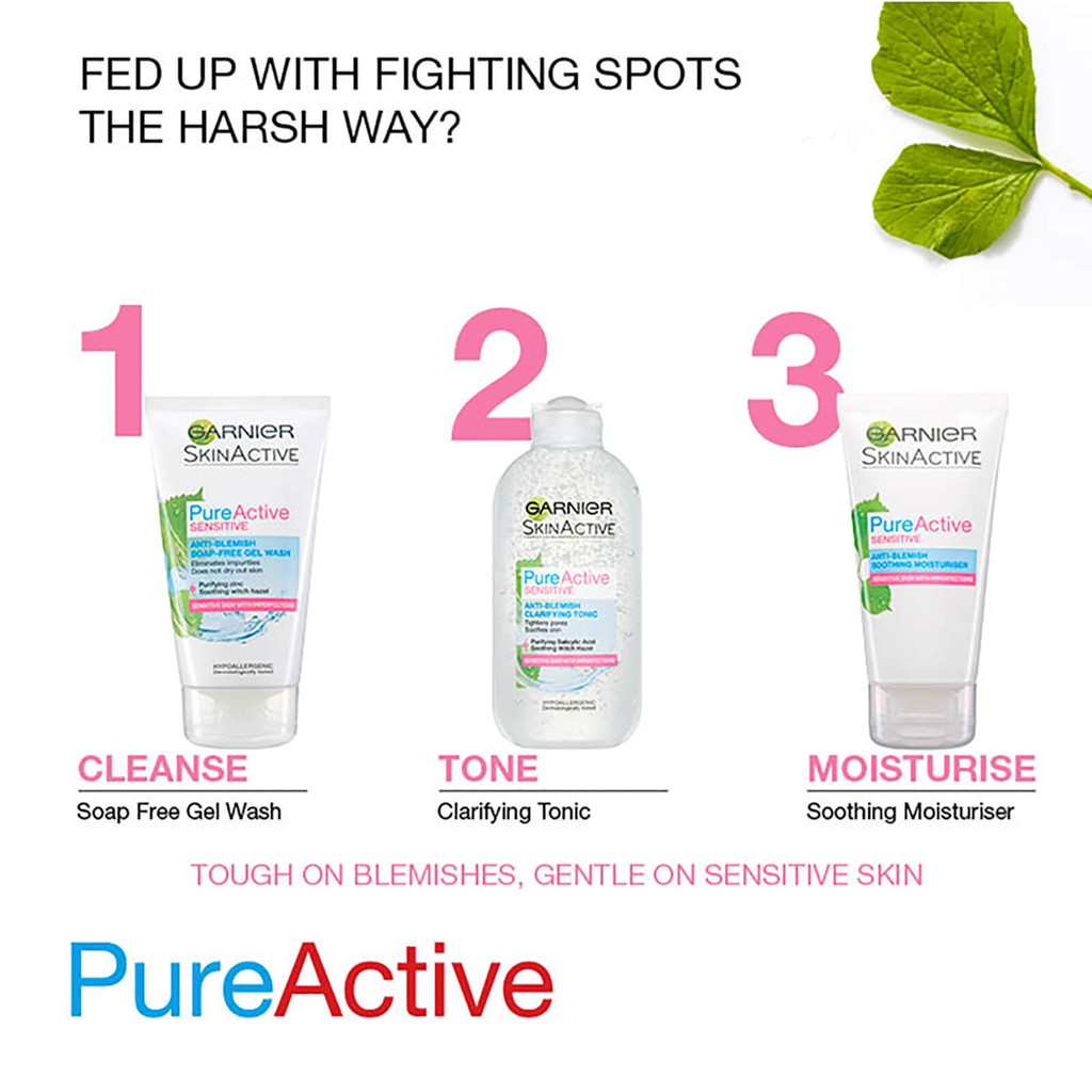 GARNIER UK (with Salicylic Acid) Anti Blemish Clarifying Toner Sensitive Skin / Gel Cleanser