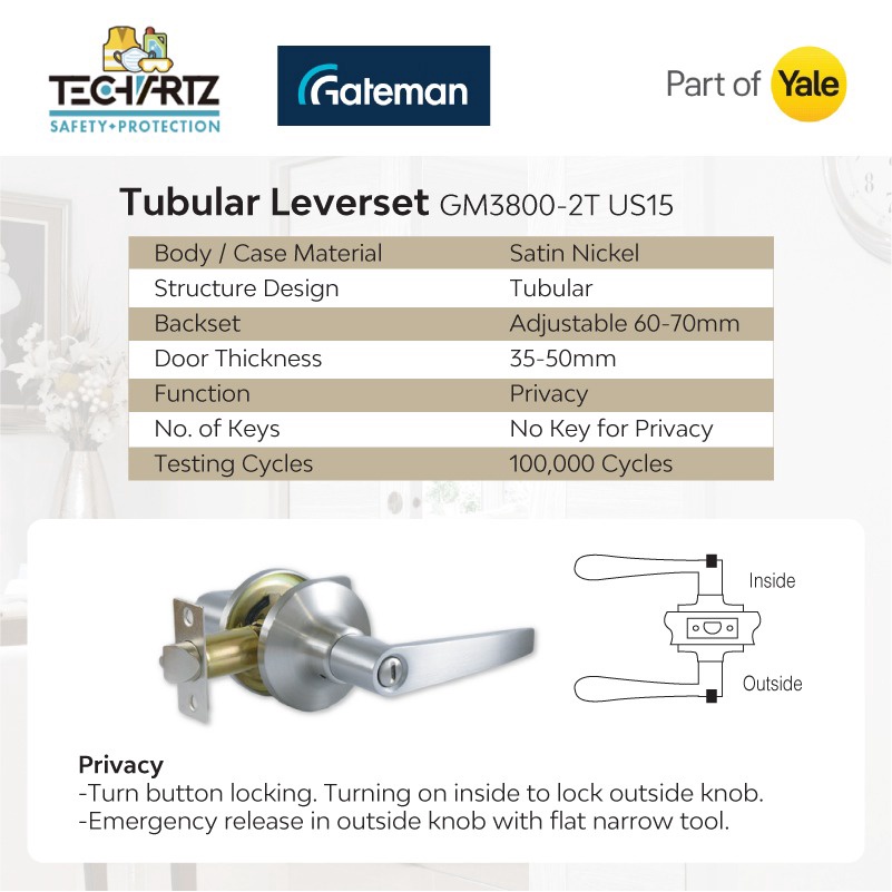 GATEMAN Tubular Leverset | Tubular Lever Entrance & Privacy Lock Set | Tombol Pintu Bilik | Kunci Pintu Rumah