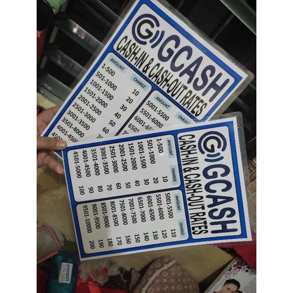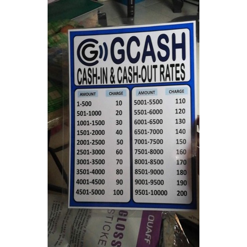 GCASH CASH IN CASH OUT RATES A4 LAMINATED SIGNAGE