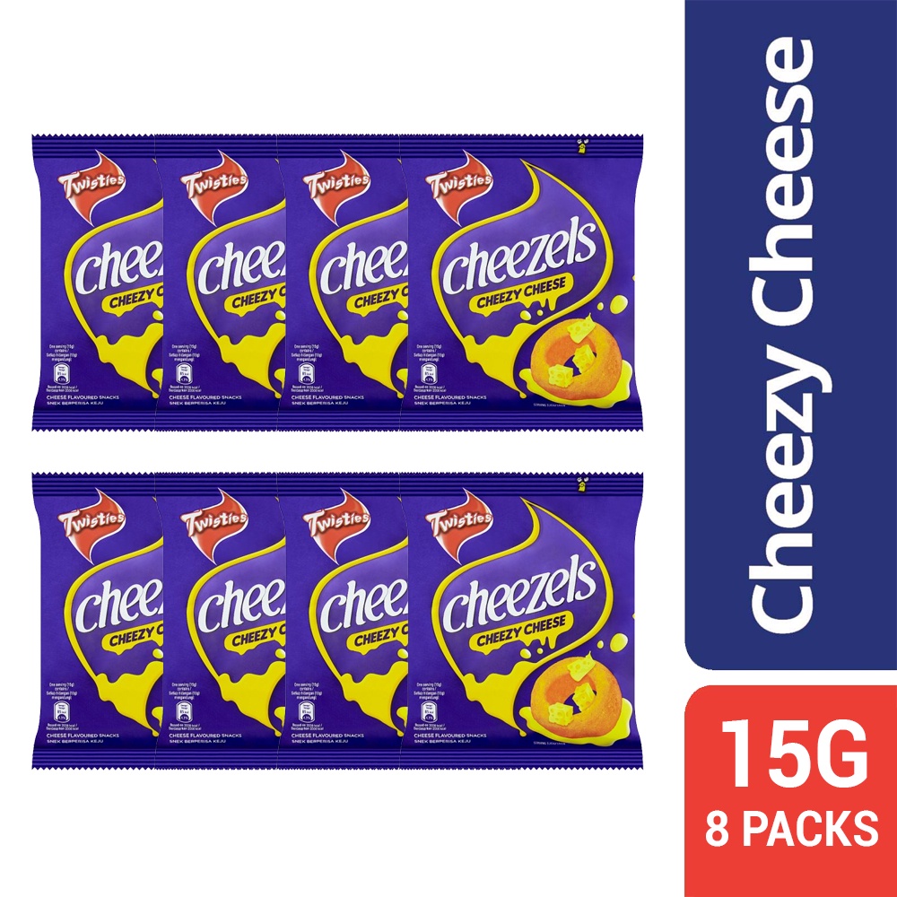 GCC-Ready Stock Twisties Cheezels Cheezy Cheese Flavoured Snacks Multi Pack 8 Packs x 15g (120g)