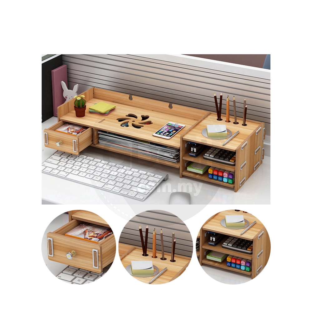 GDeal Multi Functional Computer Shelf Office Student DIY Wooden Desktop Storage Organizer
