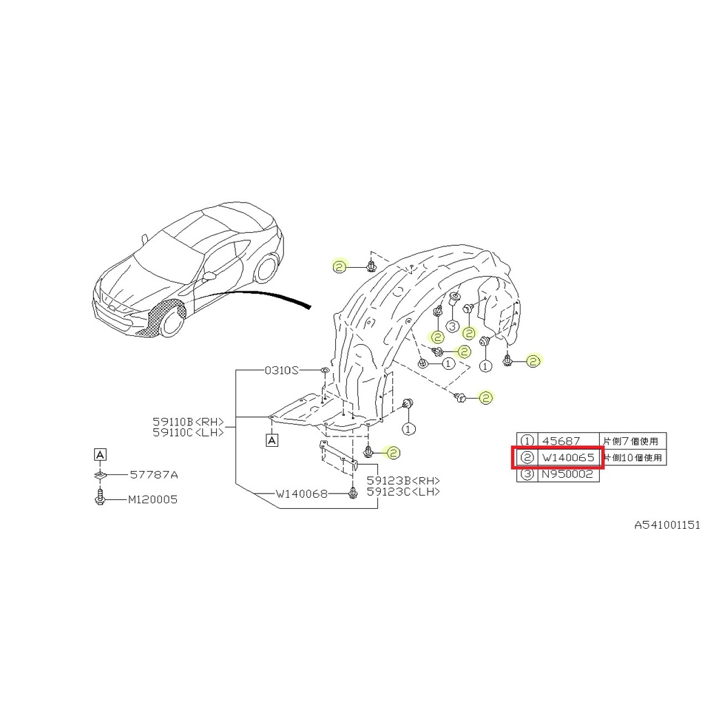 GENUINE SUBARU BRZ FENDER LINER SHIELD CLIP 909140065