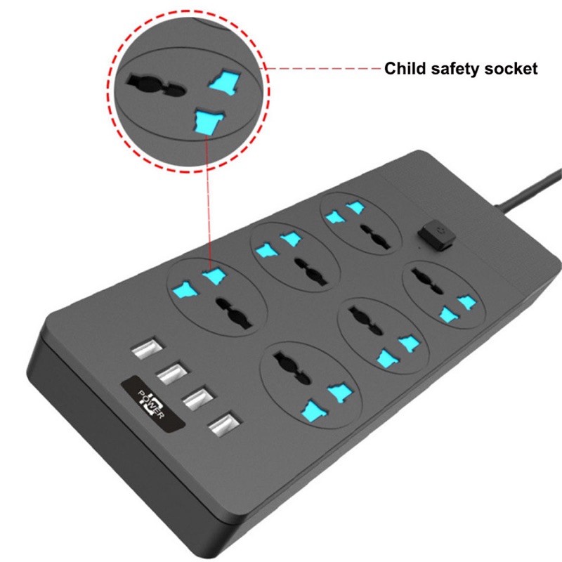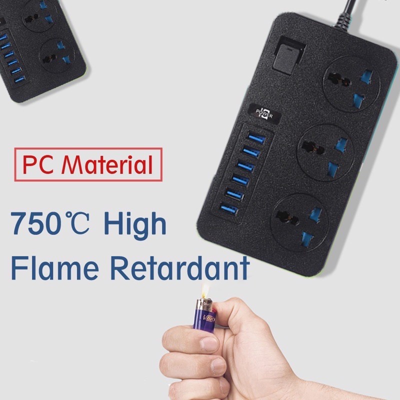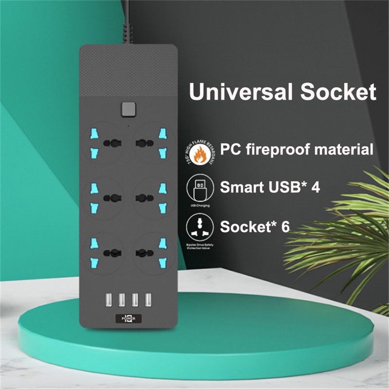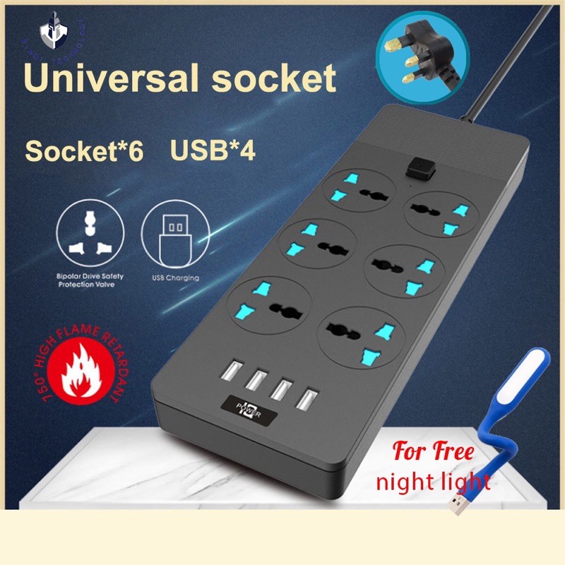 GENUINE] extension plug TB-T12 Power Socket with UK 6 Pin + 4 USB Fast Charger 250V/3000W/16A Extension