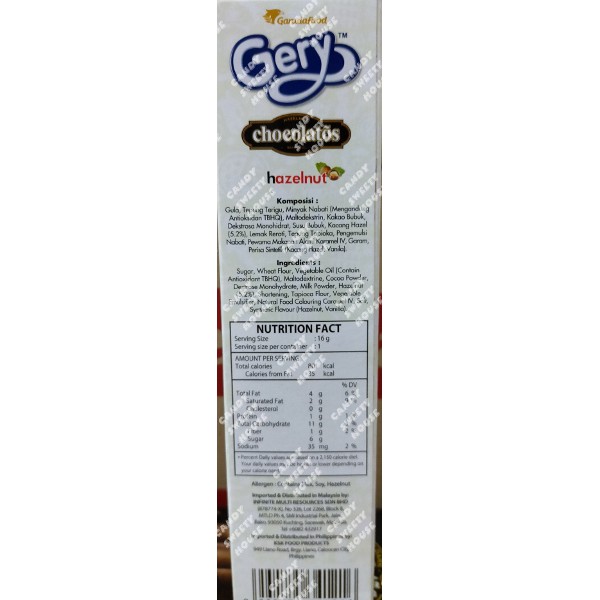 GERY Chocolatos Wafer Roll Box Chocolate Hazelnut 16g x 10pcs