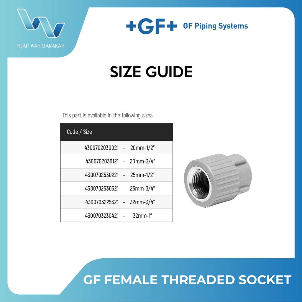 GF PPR FEMALE THREADED SOCKET 20MM - 32MM (GEORG FISHER) (SIRIM CERTIFIED)