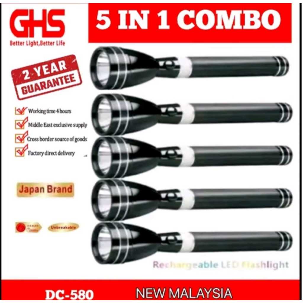 GHS DC70 Plus 4in1 5in1 Combo Set Torch Light Long Range New Version Rechargeable Battery Torch Light japan light origin