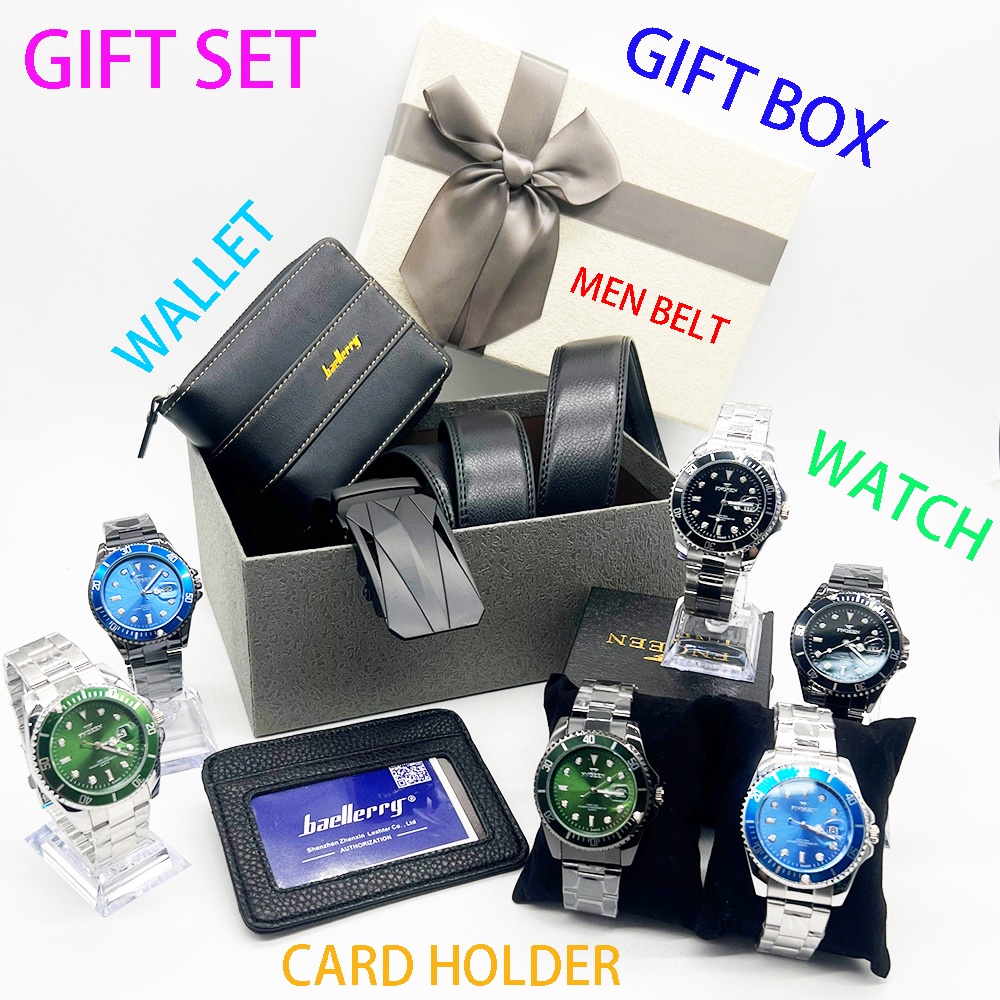 GIFT SET FOR MEN WATCH WALLET MEN BELT CARD HOLDER SET HADIAH LELAKI GIFT SET MEN (GS-001)
