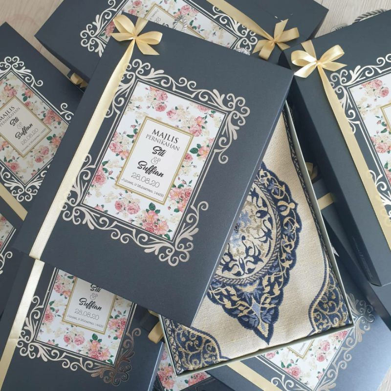 GIFT SET SEJADAH TENUN 35X70CM + PREMIUM BOX + TAG MAJLIS + Reben HARI LAHIR BIRTHDAY AKIKAH PERSARAAN KAHWI TUNANG
