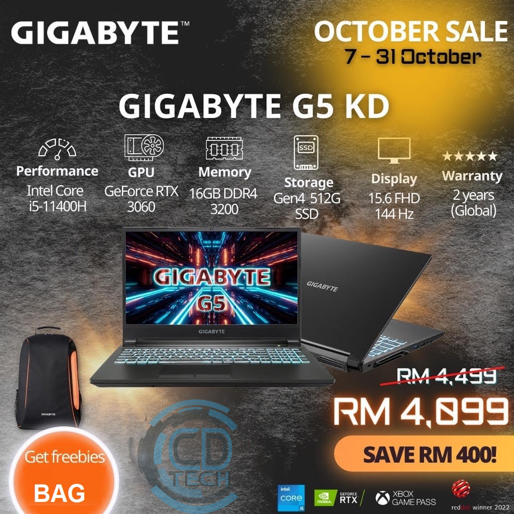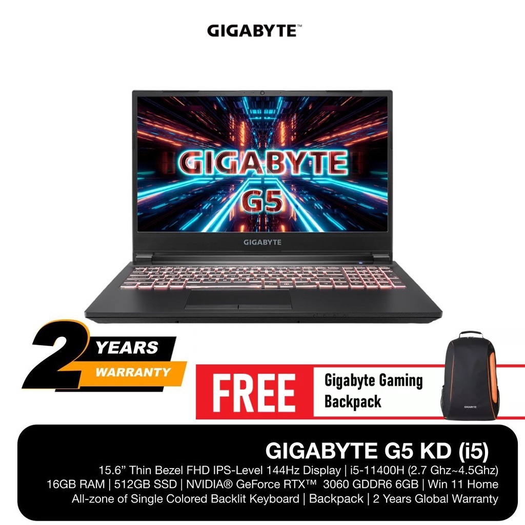 GIGABYTE G5 KD(15.6 " IPS FHD/I5-11400H/16GD4 /512SSD / RTX3060 4GD6 / Win11H) -Gaming Laptop / Notebook