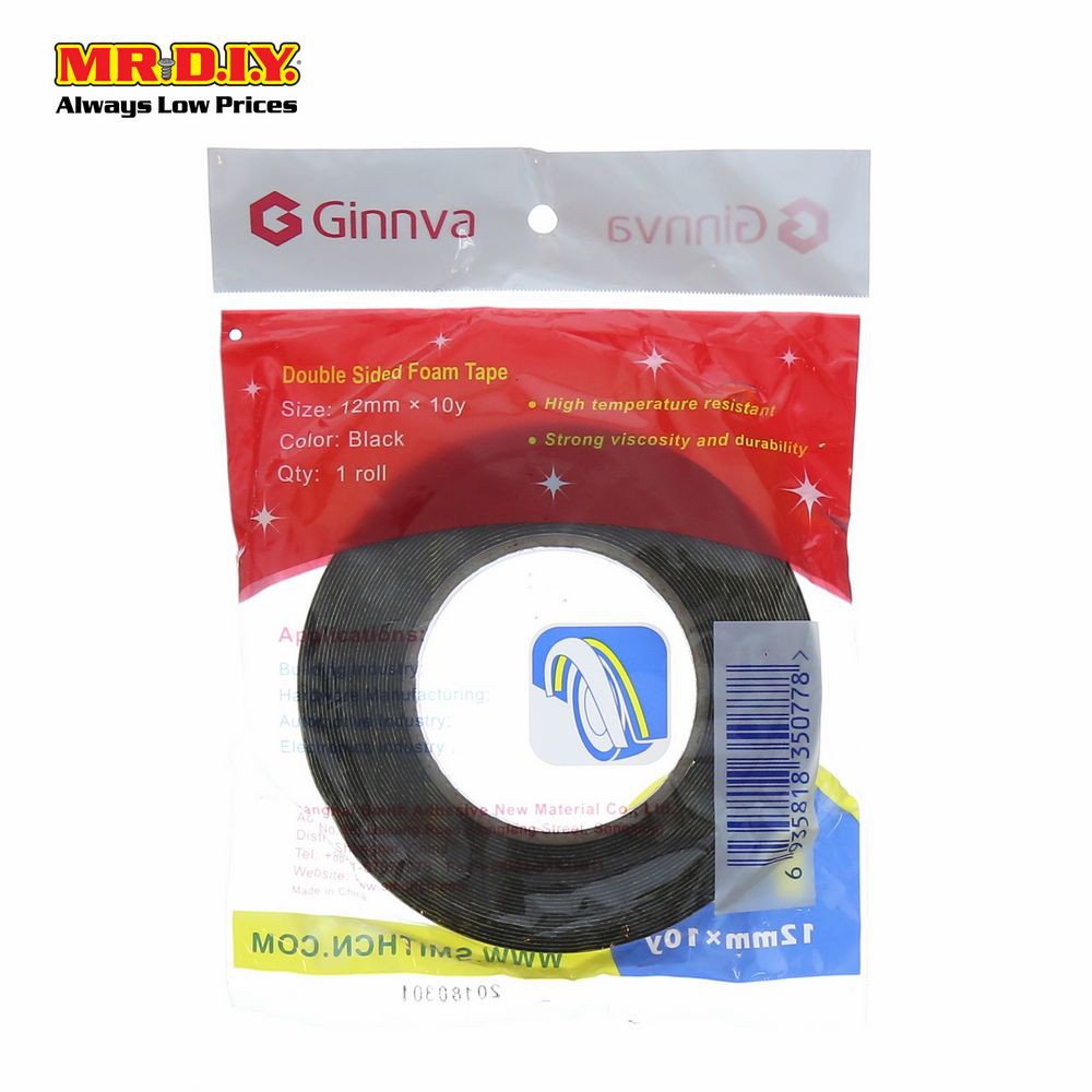 GINNVA Double Sided Foam Tape Black (1.2cm x 9m)