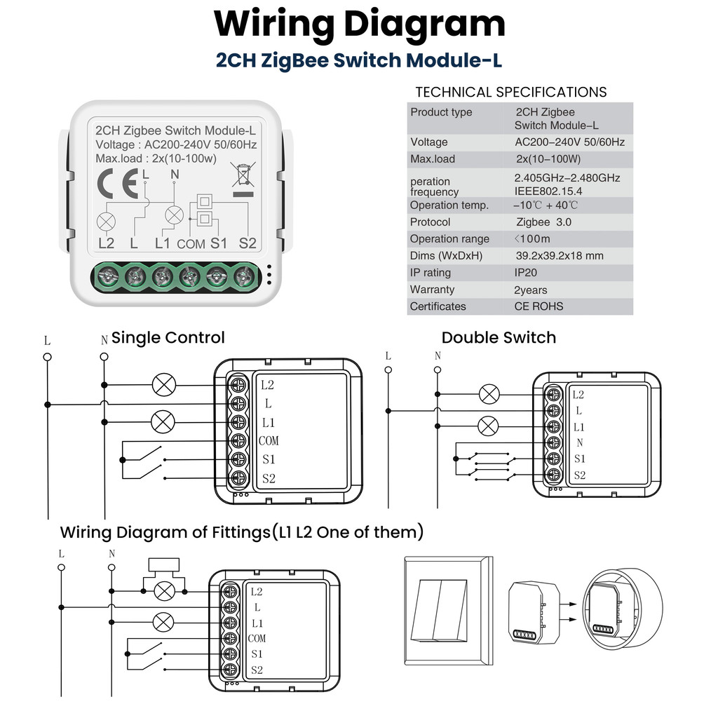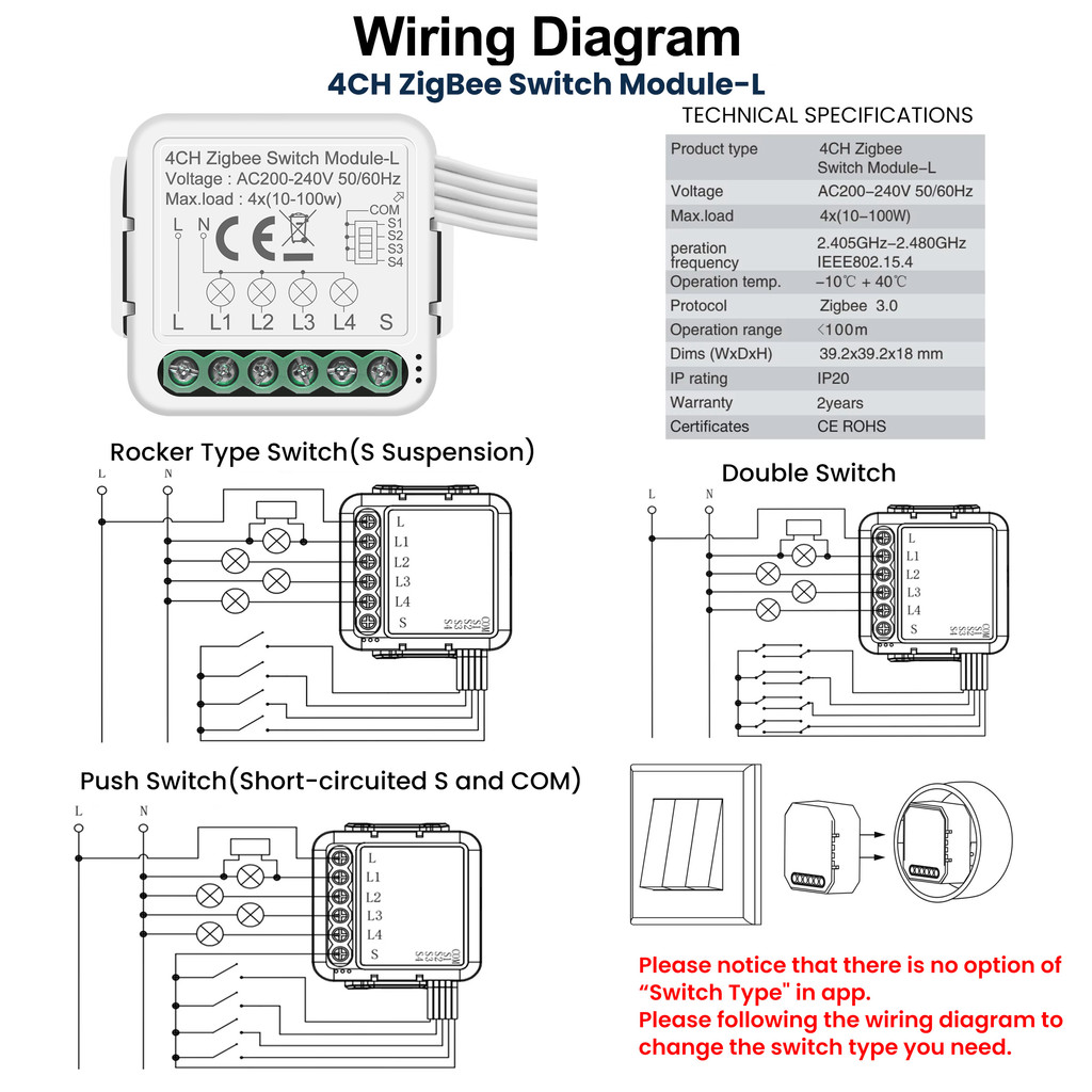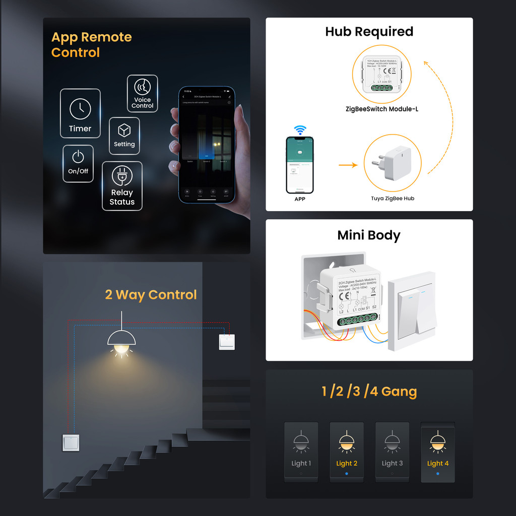 GIRIER Tuya ZigBee 3.0 Light Switch Module No Neutral Wire Required 1 2 3 4 Gang Smart Home DIY Switch 2 Way Control Supported Works with Alexa Hey Google Hub Required