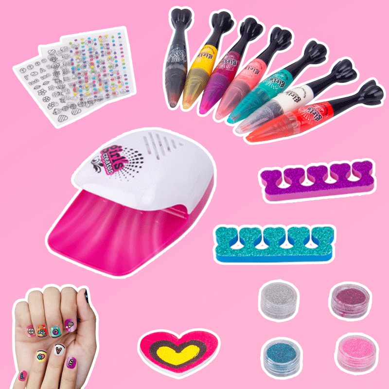 GIRL'S CREATOR Nail Glam Salon Nail Polish Set for Kids - Emoji Pedicure and Manicure Kit - Girls 5 to 10 Years Old