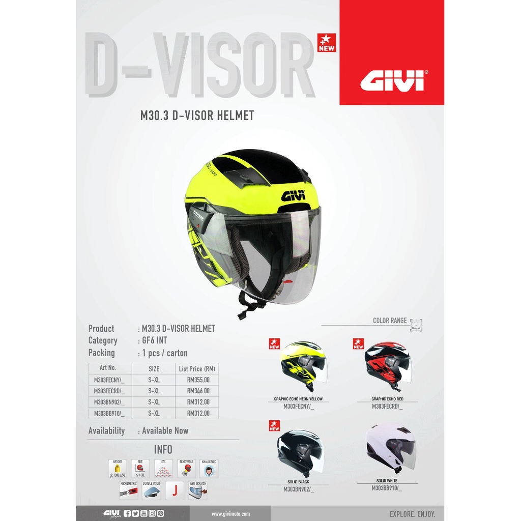 GIVI M30.3 HELMET (MULTI COLOUR) NEW 2020