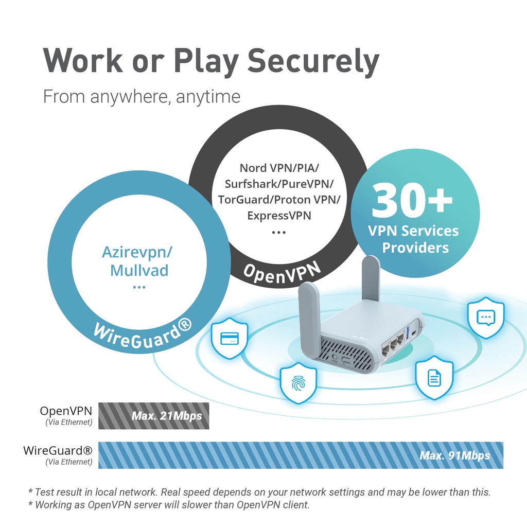GL.iNet GL-MT1300 (Beryl) VPN Secure Travel Gigabit Wireless Router, AC1300 400Mbps (2.4GHz) + 867Mbps(5GHz) Wi-Fi, Pocket-Sized Hotspot, IPv6, Tor, MicroSD Slot, USB3.0 for Wi-Fi Repeater