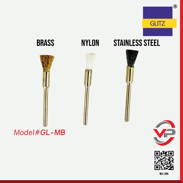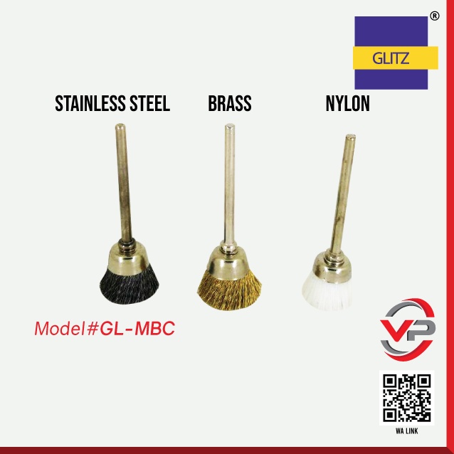 GLITZ MINI BRUSH WITH 3MM SHANK - MINIATURE CUP WHEEL BRUSH / END BRUSH 1 PC / MINI DIE GRINDER COMPATIBLE DREMEL ROTARY