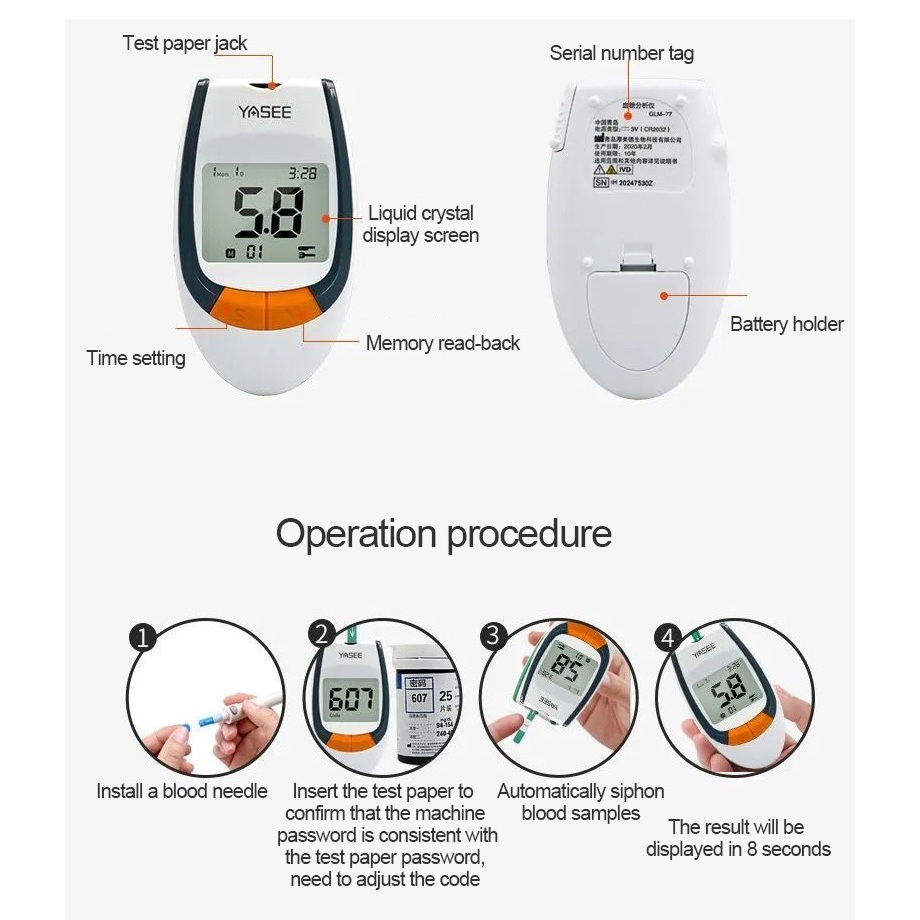 GLM-77 Blood Glucose Meter 50pcs Test Strips & Lancets Glucometer Kit Diabetic Blood Sugar Meter Diabetes Tester