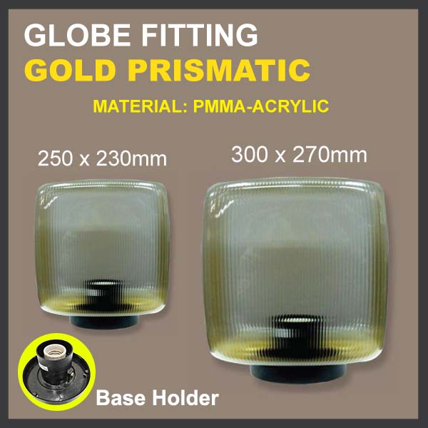 GLOBE LIGHT FITTING 300 X 270MM ( GOLD PRISMATIC )