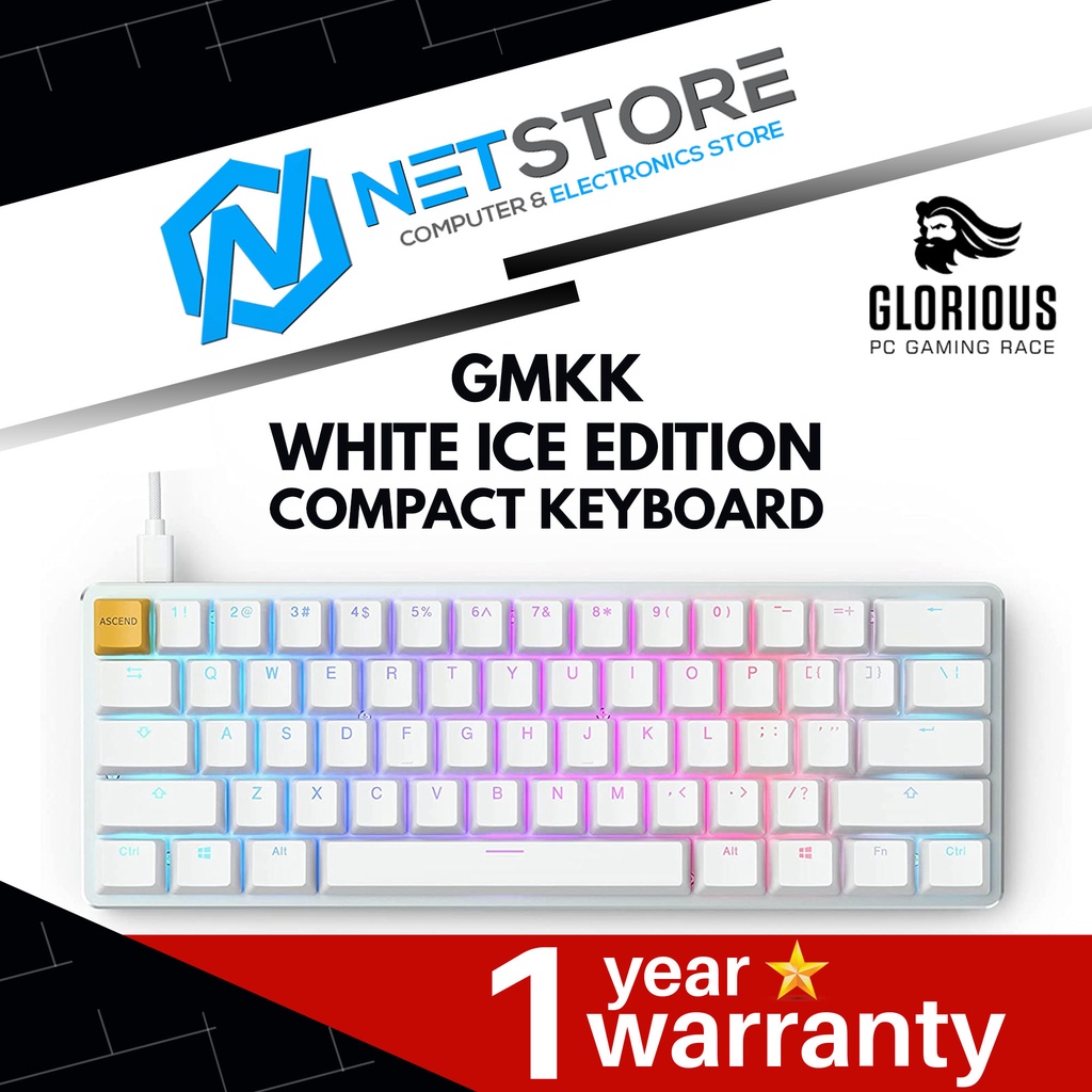 GLORIOUS GMMK WHITE ICE EDITION COMPACT KEYBOARD - GLO-GMMK-COM-BRN-W