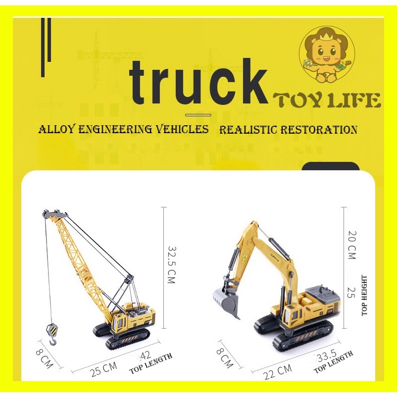 GLW Construction Toy Vehicle Lorry Truck Bulldozers Forklift Crane Towers Excavators Cranes Mainan Lori Mainan Jangkaut