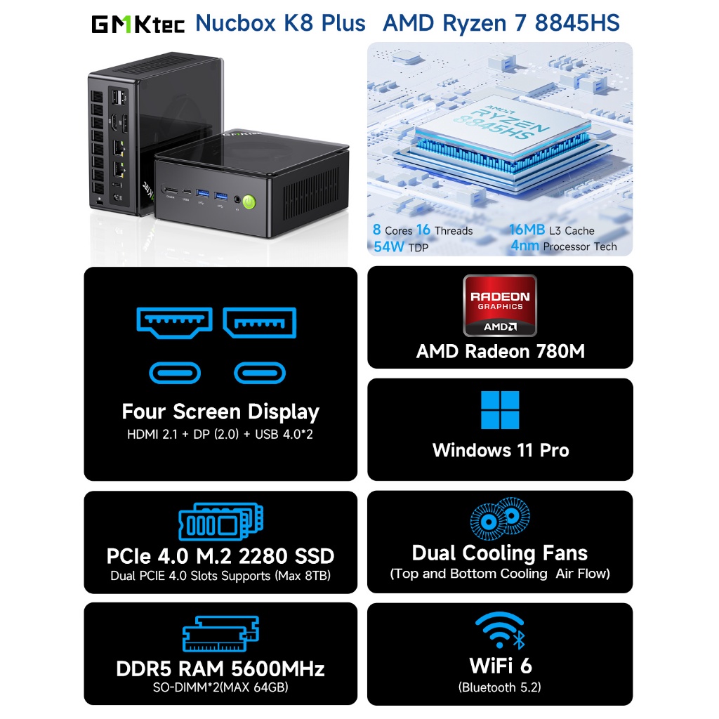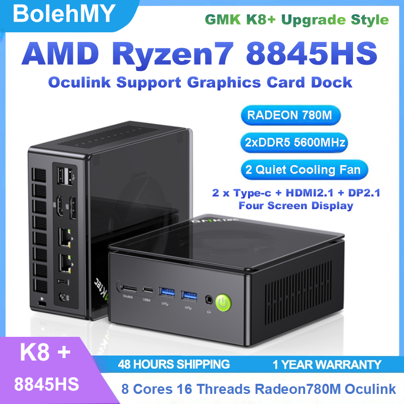 GMKtec K8+ Upgrade Style AMD Ryzen7 8845HS DDR5 PCIE4.0 Oculink Support Extra GPU Gaming MINI PC