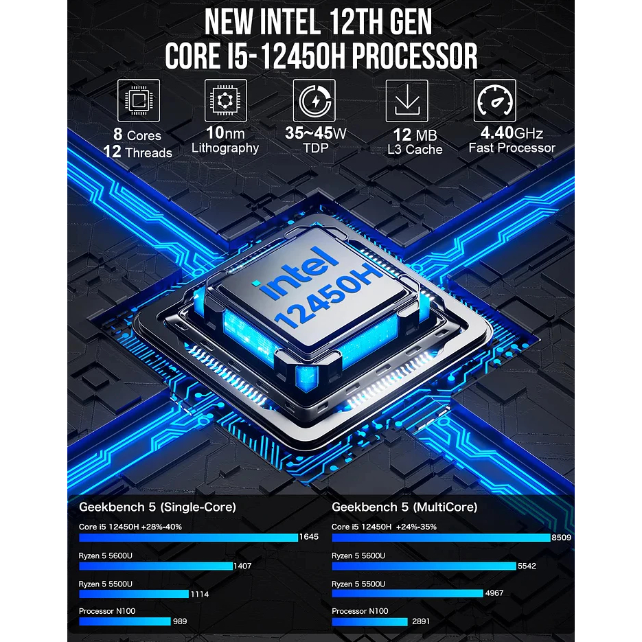 GMKtec M3 Intel i5 12450H Windows Mini PC 64GB DDR4 RAM 2TB SSD WiFI 6 Gaming PC Gaming Computer CPU
