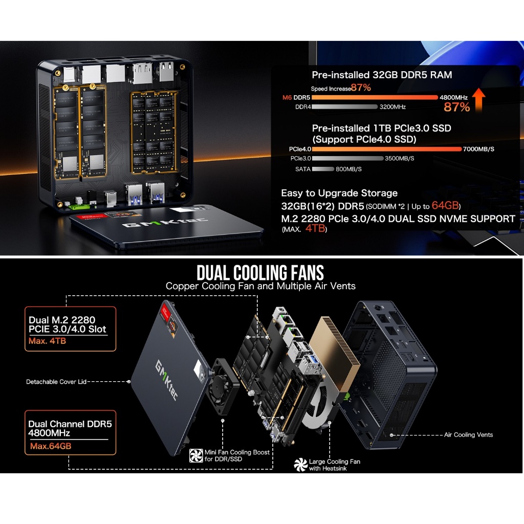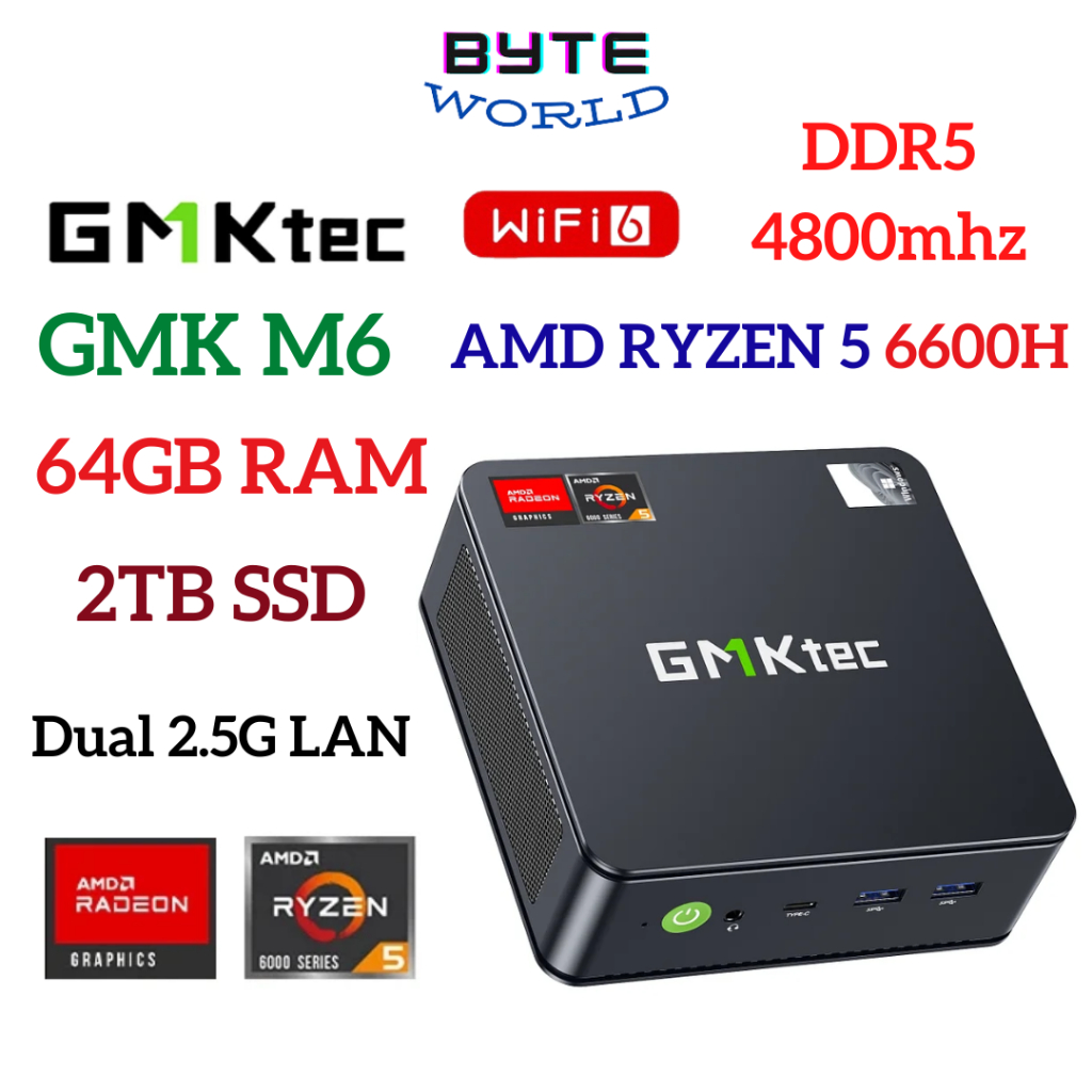 GMKtec M6 AMD Ryzen 5 6600H Windows Mini PC 64GB DDR5 RAM 2TB NVME SSD Gaming PC Gaming Computer CPU