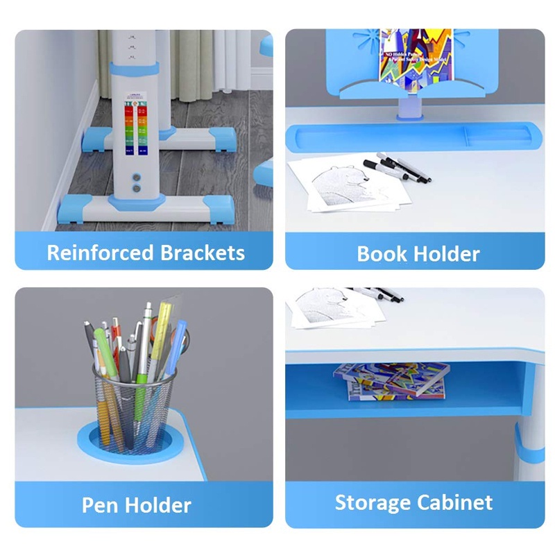 GMSHOP Adjustable Height Children Study Table With Lamp Kids Online Learning Study Desk Set