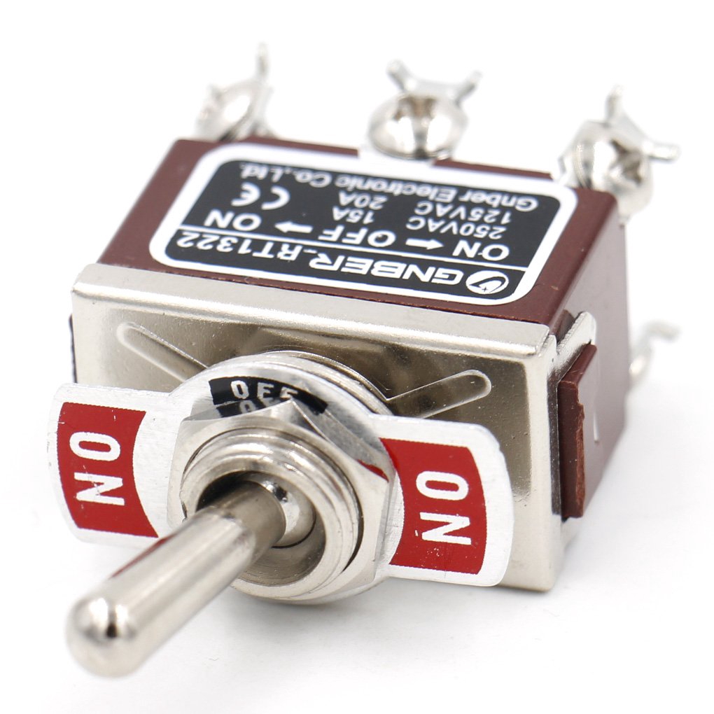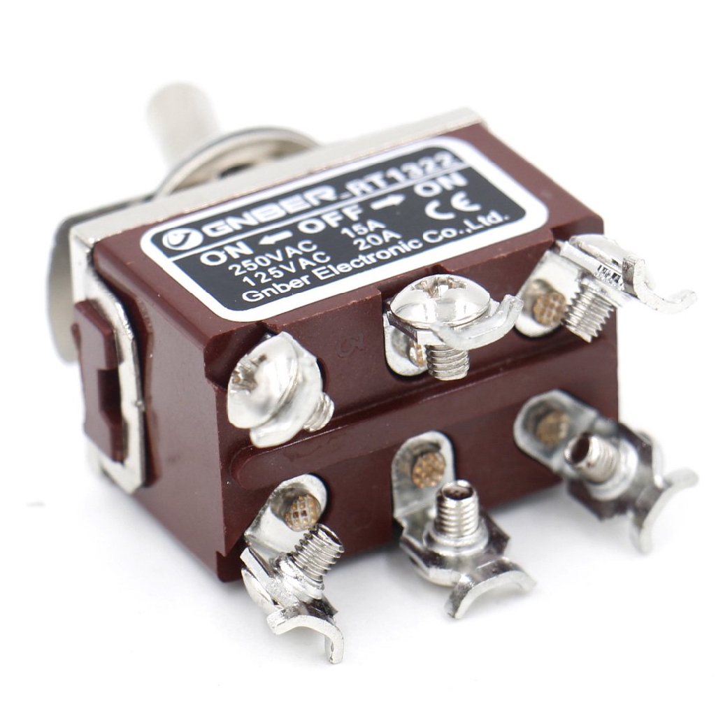 GNBER RT-1322 Toggle Switch DPDT ON/Off/ON 3 Position AC 15A/250V 20A/125V 6 Screw Terminals