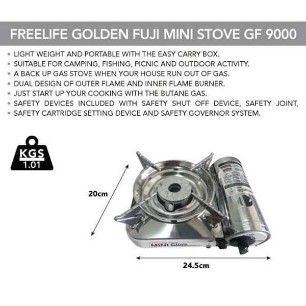 GOLDEN FUJI Stainless Steel Mini Portable Gas Stove GF-9000 / GF9000 Dapur Gas Mudah Alih Steamboat & Camping Stove