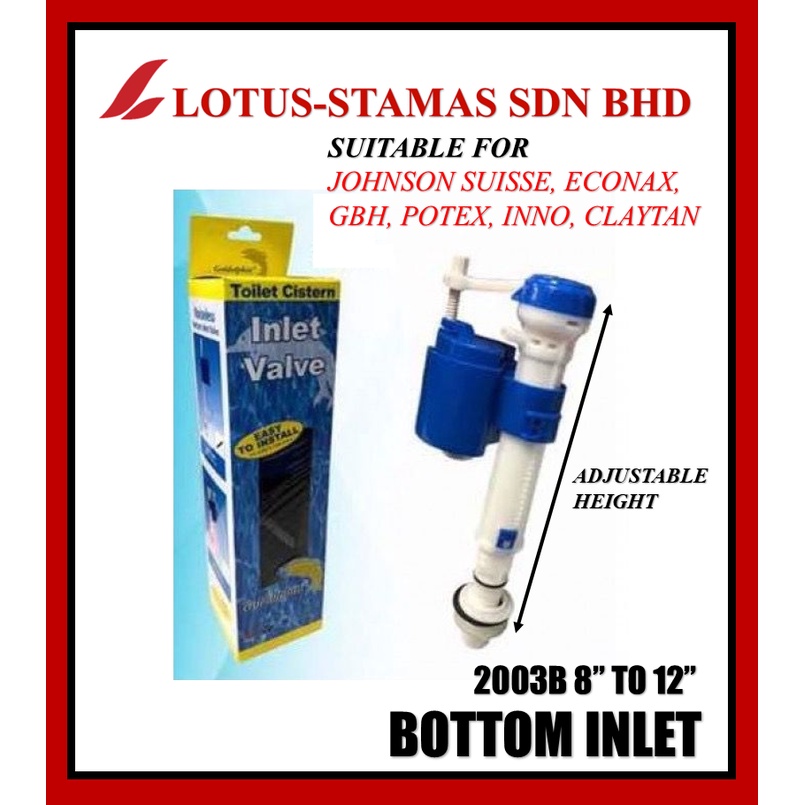 GOLDOLPHIN WC CISTERN WATER TANK UNIVERSAL ADJUSTABLE BOTTOM INLET VALVE GDA2003B Johnson Suisse Claytan Econax Potex