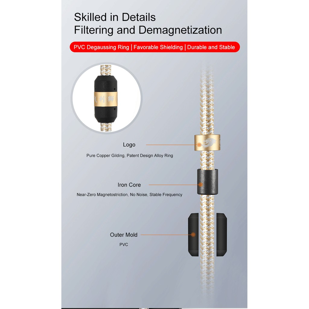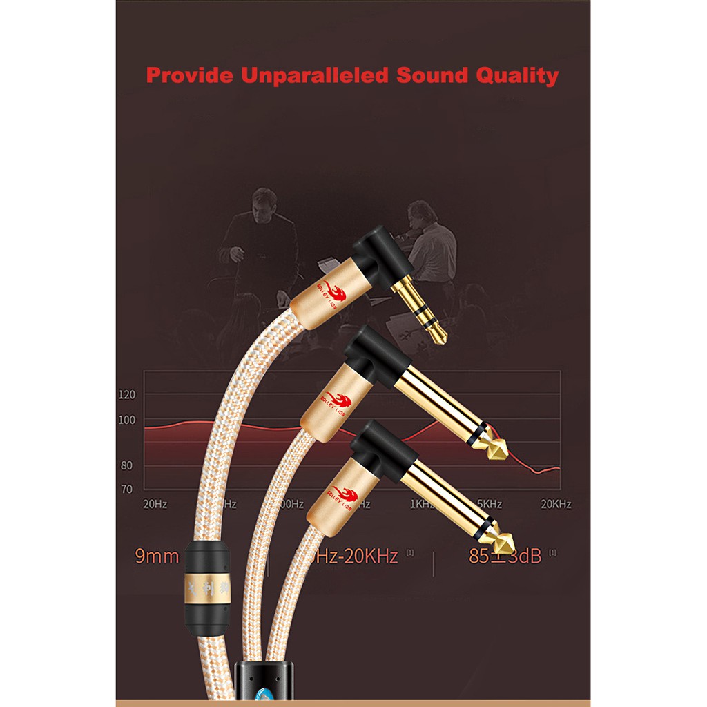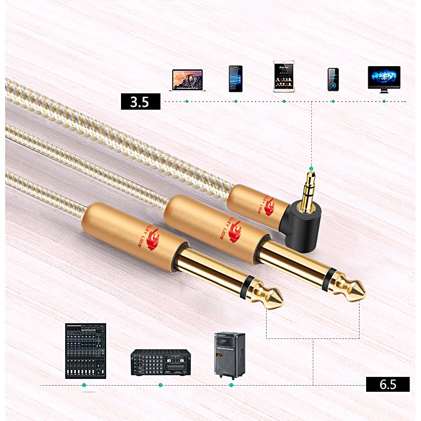 GOLLEY LION Gold-Plated Stereo Gold Sleeve Audio Aux Cable 3.5mm Male to Dual 6.5mm TS Male Audio Cable