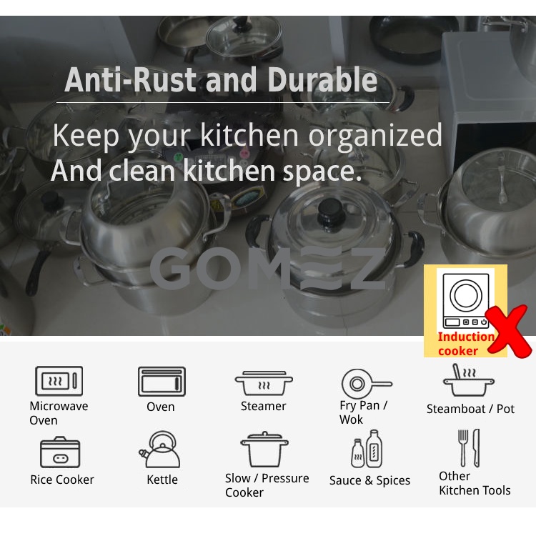 GOMEZ Stainless Steel 304 Working Table Heavy Duty / Kitchen Commercial Work Table / Meja Dapur / Chopping Cook Rack