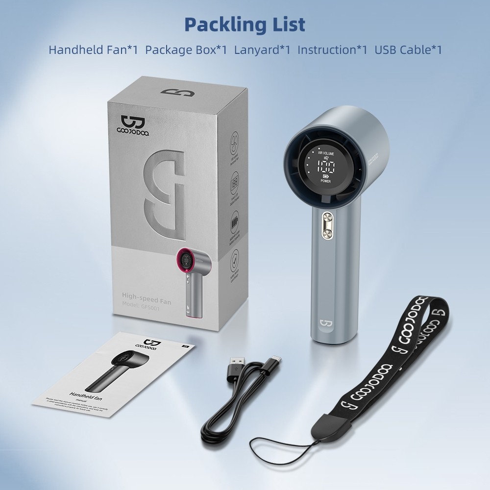 GOOJODOQ High Speed Handheld Fan Powered Portable Quiet Operation Adjustable Speeds LED Display Battery USB Mobile Fans