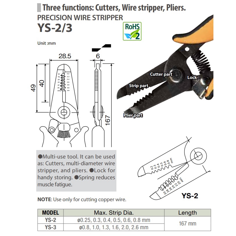 GOOT YS-3 Precision Wire Stripper - 0.8 ~ 2.6mm (Italy)