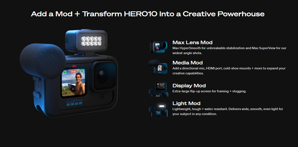 GOPRO HERO 10 BLACK ACTION CAMERA 5.3K VIDEO AND 23MP PHOTOS GP2 PROCESSOR HYPERSMOOTH 4.0