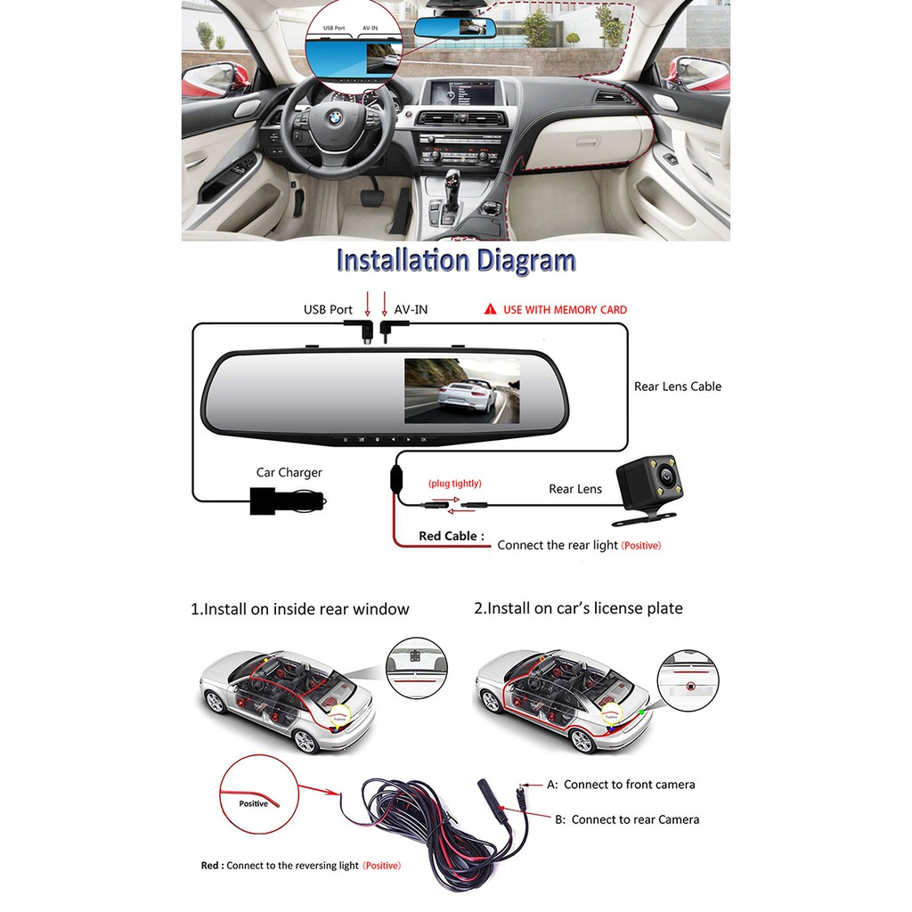 GOQ D208 Dual Lens Car Camera Recorder Front and Back Mirror Dashcam Video Cam 1080P FHD