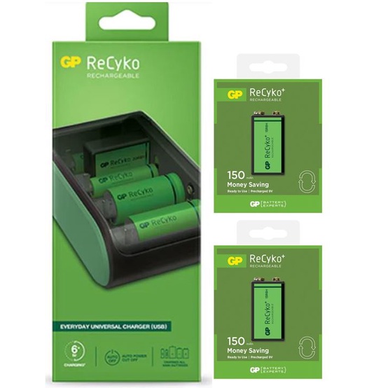 GP Batteries Universal Charger for AA,AAA,C,D,9V B631 Charger +GP ReCyko+ 9v 150mAh