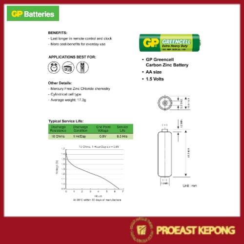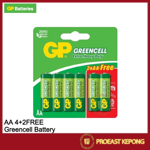 GP Battery Original Greencell AA 1.5V Extra Heavy Duty ( AA x4+2Free )
