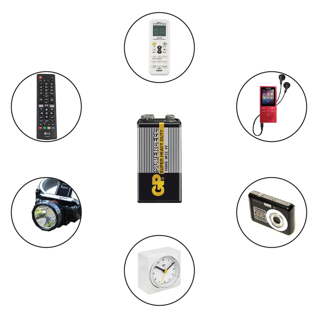 GP SUPERCELL Super Heavy Duty 1604S 6F22 9V Battery Batteries 1 PC/Bateri GP SUPERCELL