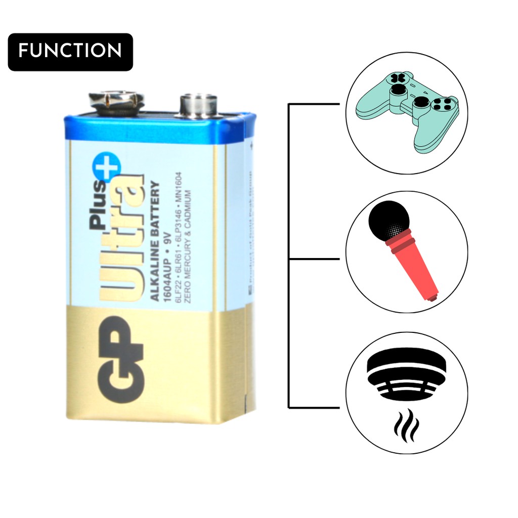 GP Ultra Plus 9V Alkaline Battery/Bateri 9V Alkaline Ultra Plus GP - Original GP/Suitable For Smart Tag & Remote Car