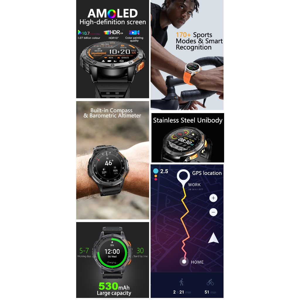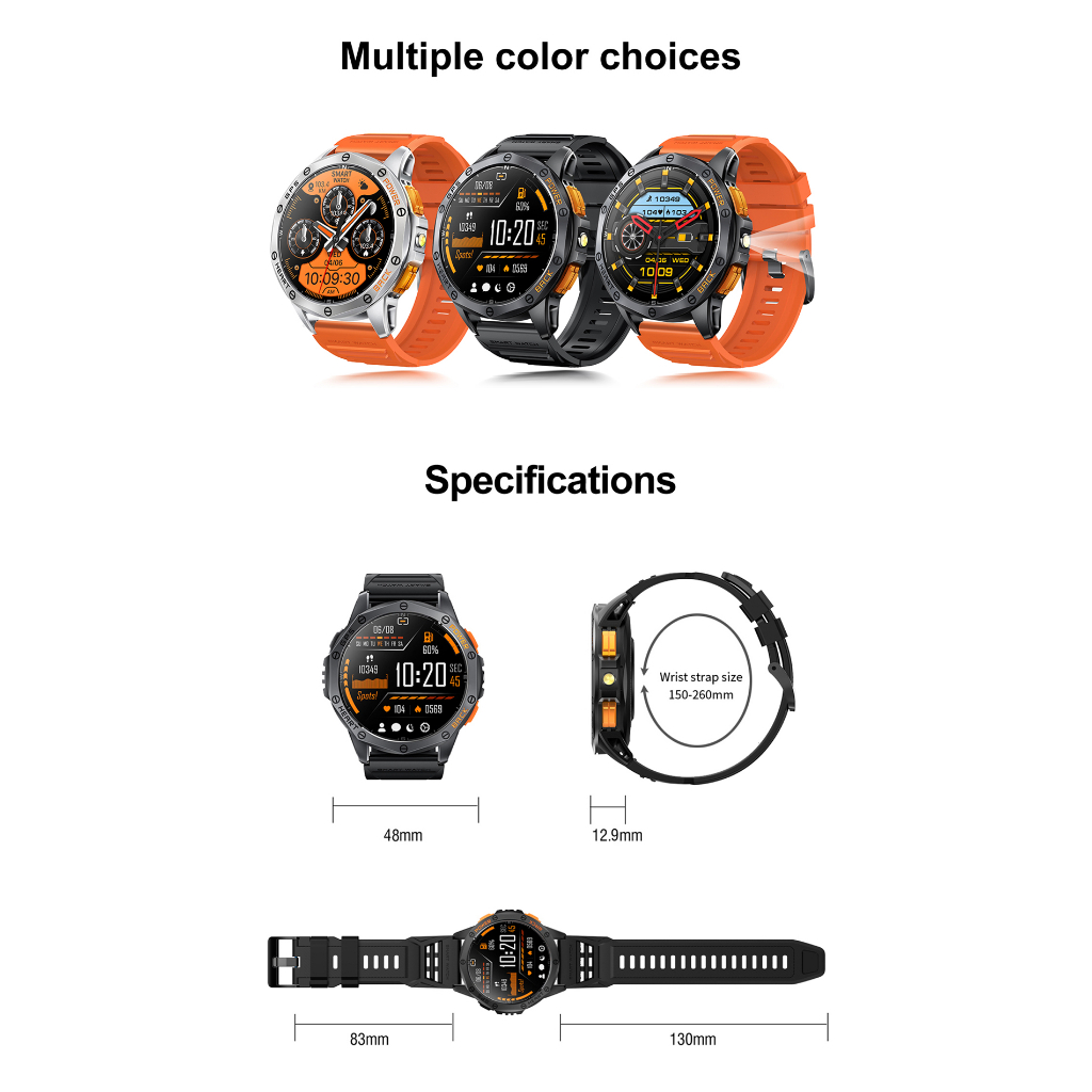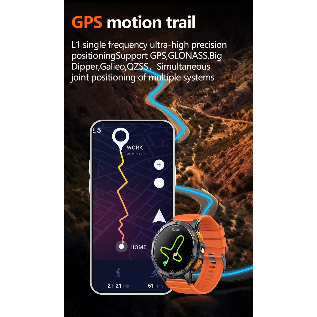 GPS K67 Men Smart Watch LED Flashlight AMOLED Compass Barometric Altimeter Outdoor Sports Call Smartwatch