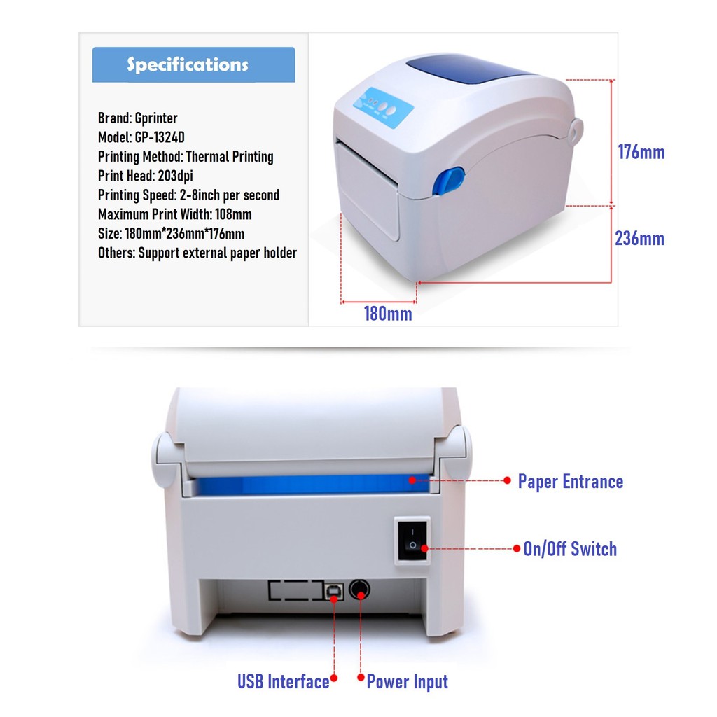 GPrinter GP-1324D A6 Thermal Printer Barcode Label Air-waybil Printing SHOPEE LAZADA Direct thermal USB LAN WIFI