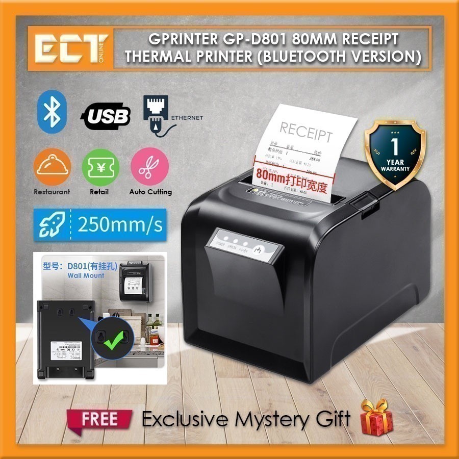 GPrinter GP-D801 80mm Receipt Thermal Printer (Auto Cut Function) with USB + Ethernet + Serial / Bluetooth