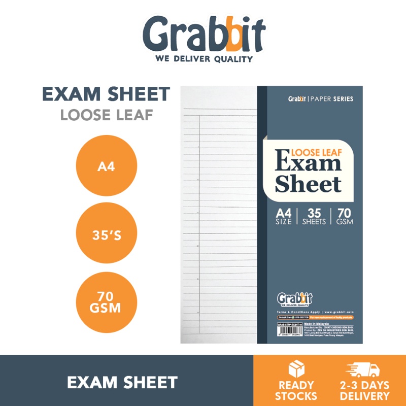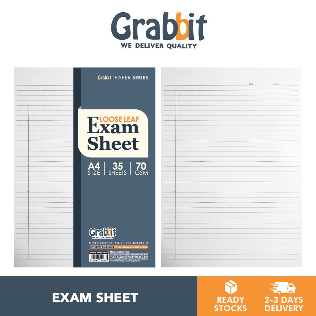 GRABBIT A4 Loose Leaf Exam Sheet Test Pad [70gsm 35's] Kertas Kajang Kertas Exam