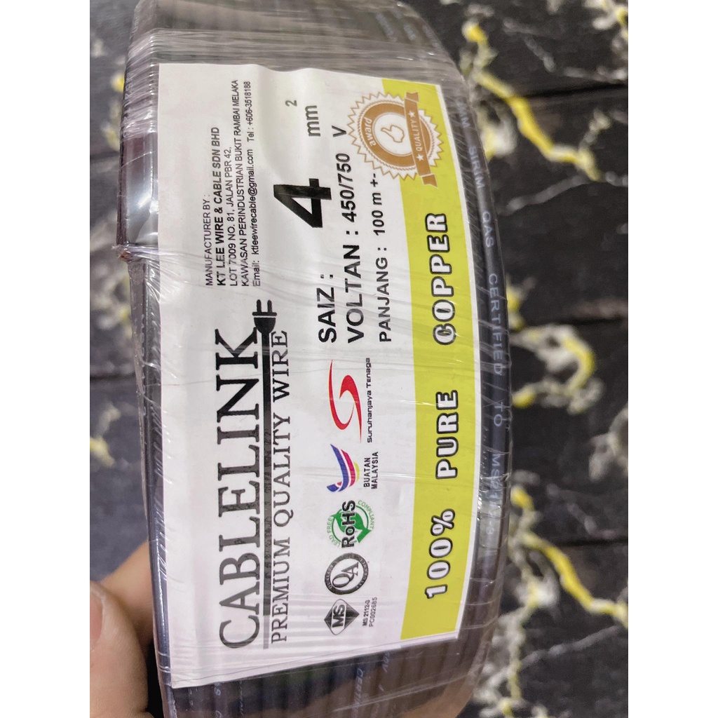 GRADE A+ 1 single core wayar cable 1.5mm 2.5mm 4mm cable link million sirim kabel dawai wiring home plug socket switch