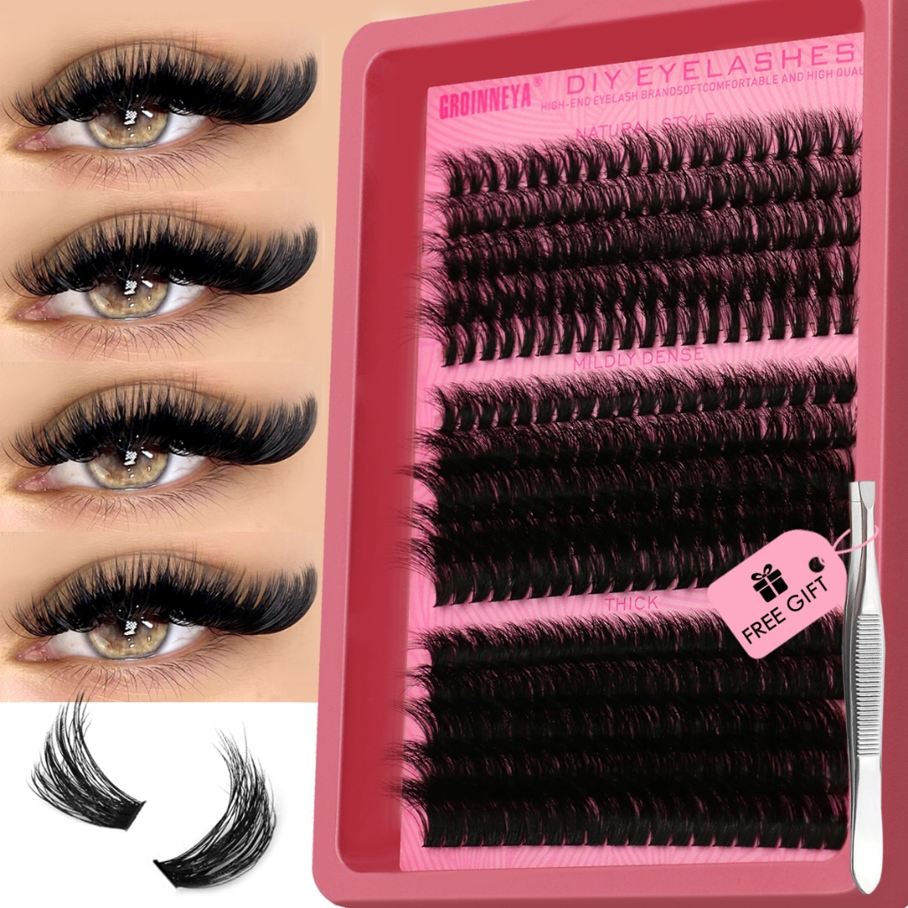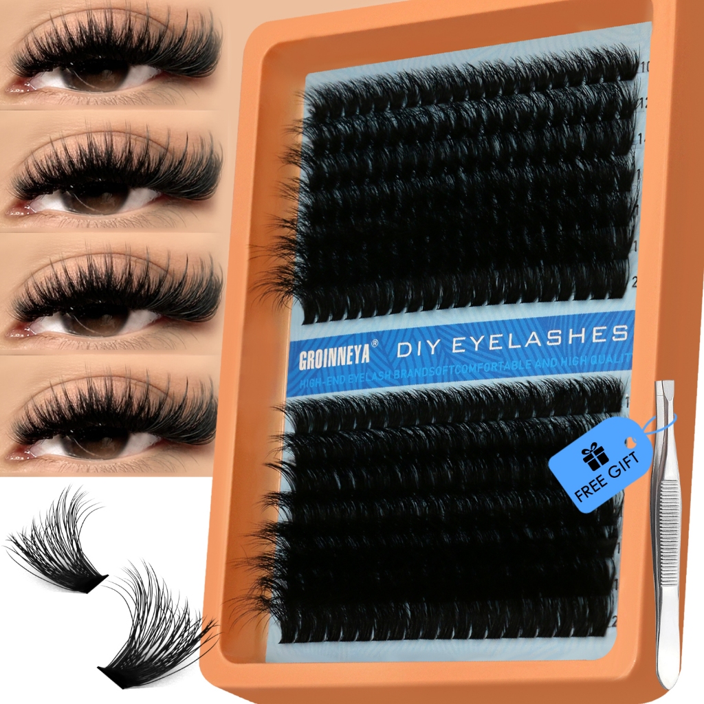 GROINNEYA Lash Clusters 280 PCS Mix Length Individual Lashes 3D Fluffy Effect Eyelashes Extension