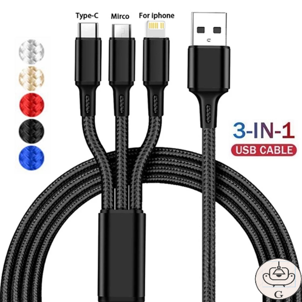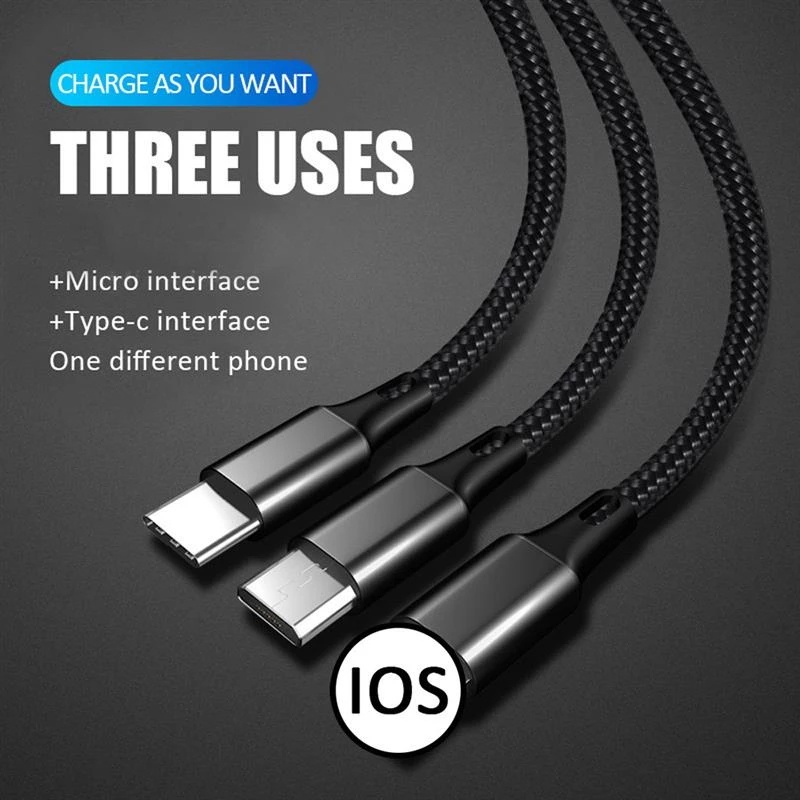 GS Micro USB Type C 3 In 1 Charging Cable /Mobile Phone Multi Port Multi Usb Charging Data Cable